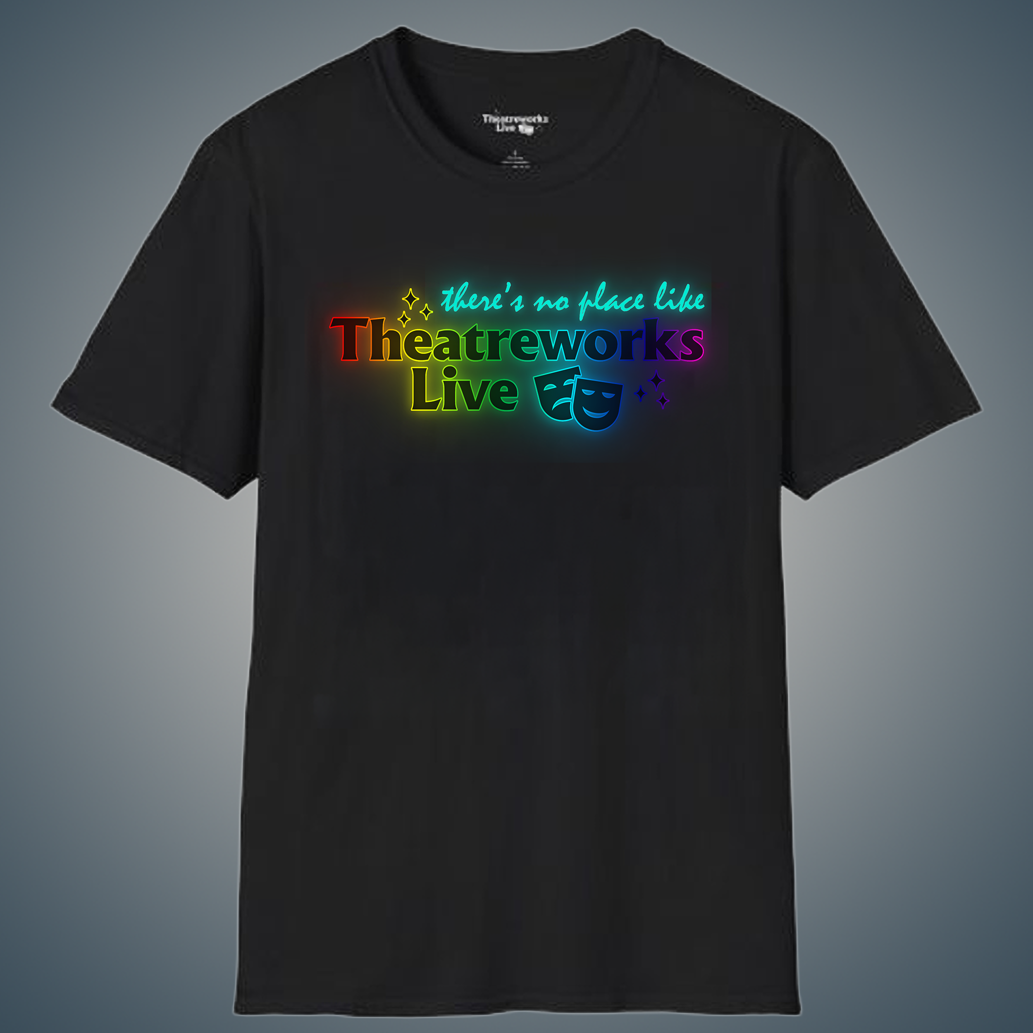 This unisex T-shirt is a must-have for any theatre enthusiast. Featuring the phrase ‘There’s no place like Theatreworks Live’, this shirt exudes a love for the performing arts and live entertainment. Perfect for theatre lovers and performers alike, this T-shirt is ideal for casual wear to show off your passion for the stage. Great for gifts during birthdays, holidays or any special occasion celebrating the magic of theatre.